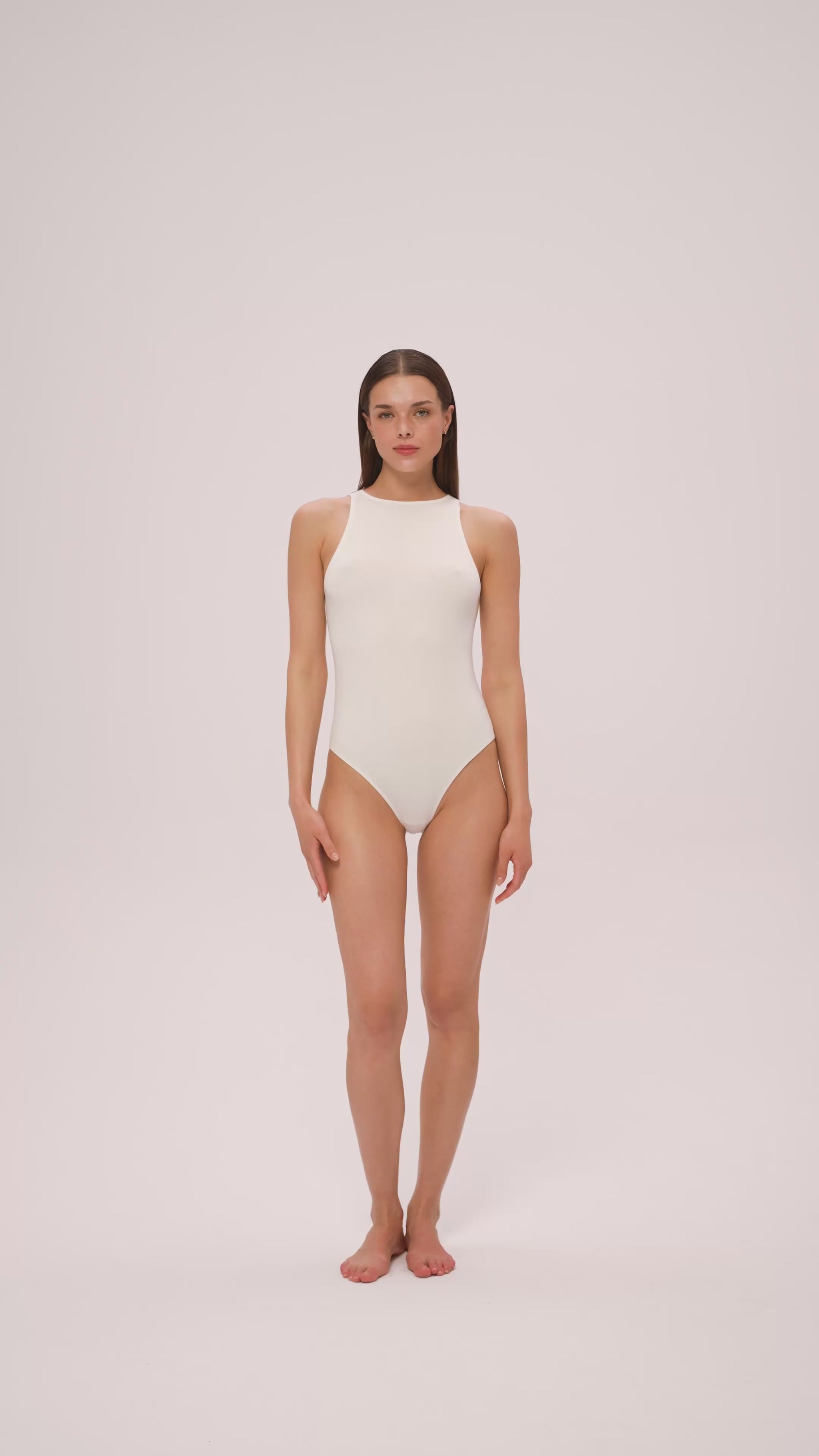 La parte anteriore aperta senza tagli o rientranze, la scollatura morbida e le proporzioni perfettamente bilanciate fanno di questo modello il body più versatile della collezione, la cui forza risiede nella purezza delle forme e nella perfetta esecuzione in viscosa di alta qualità con elastan, che permette di adattarsi al corpo senza inutili tensioni, pur rimanendo impercettibile nell'indosso grazie alle cuciture piatte e quasi invisibili e alla delicata chiusura a due bottoni automatici sul fondo.