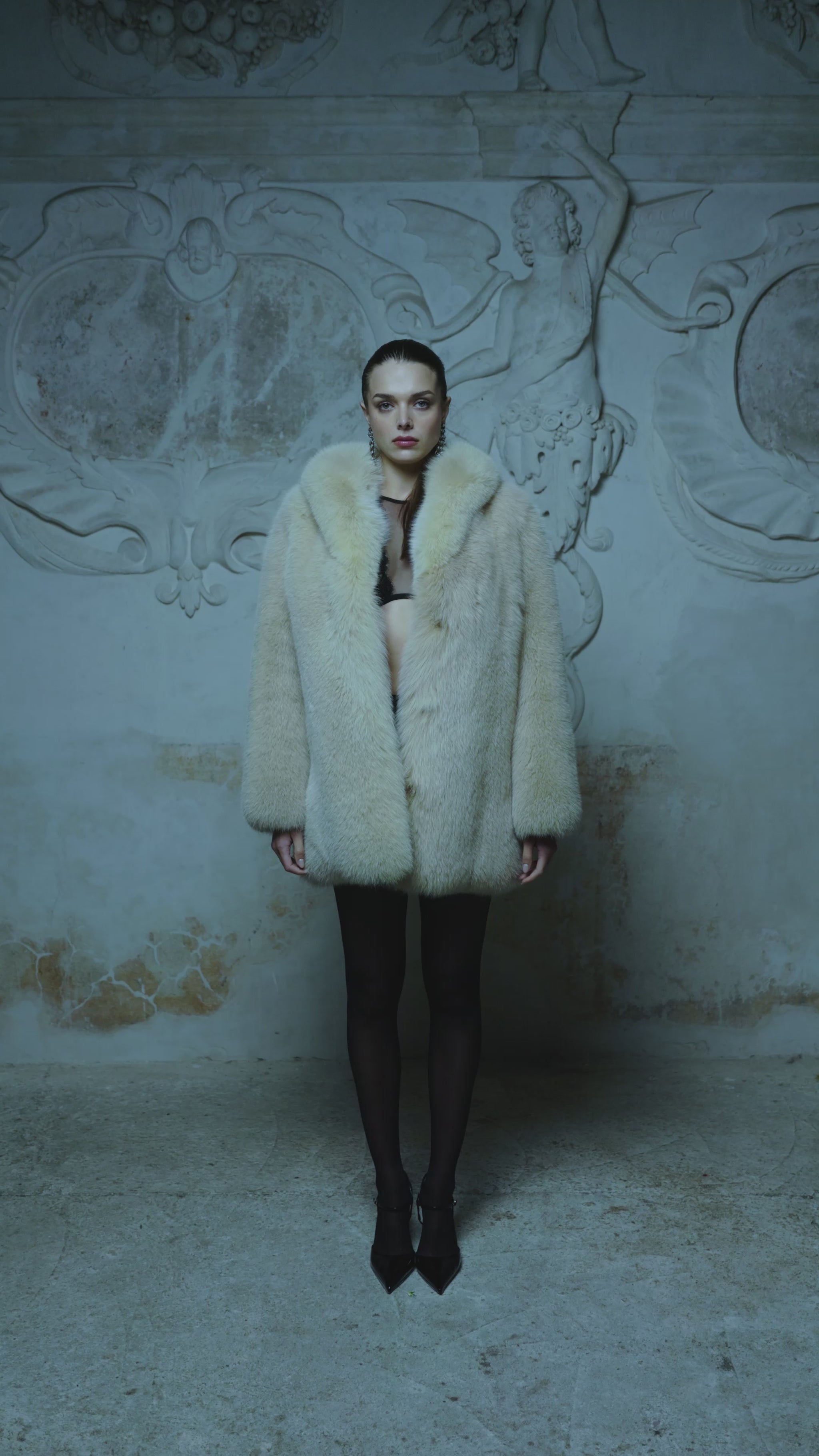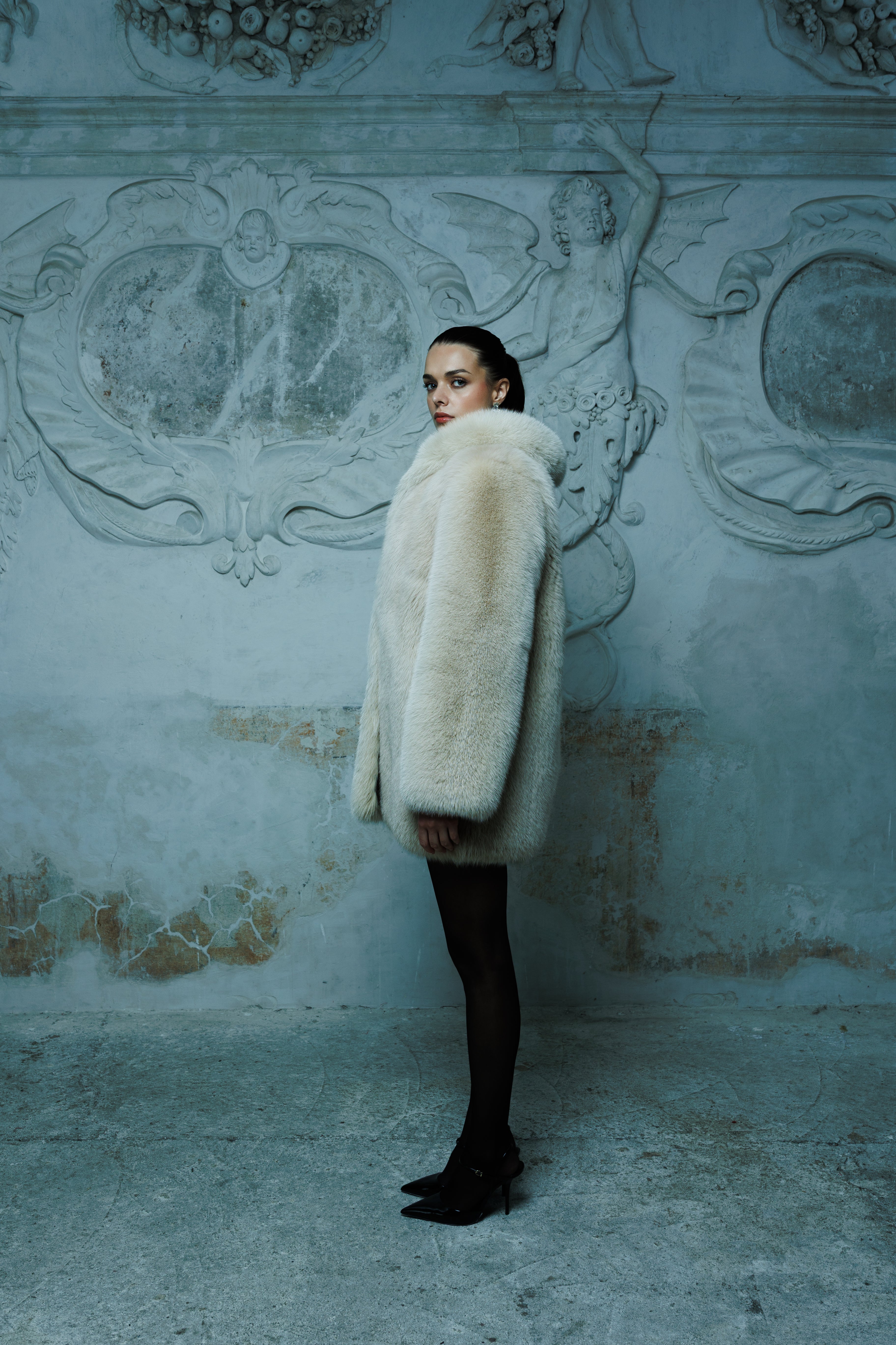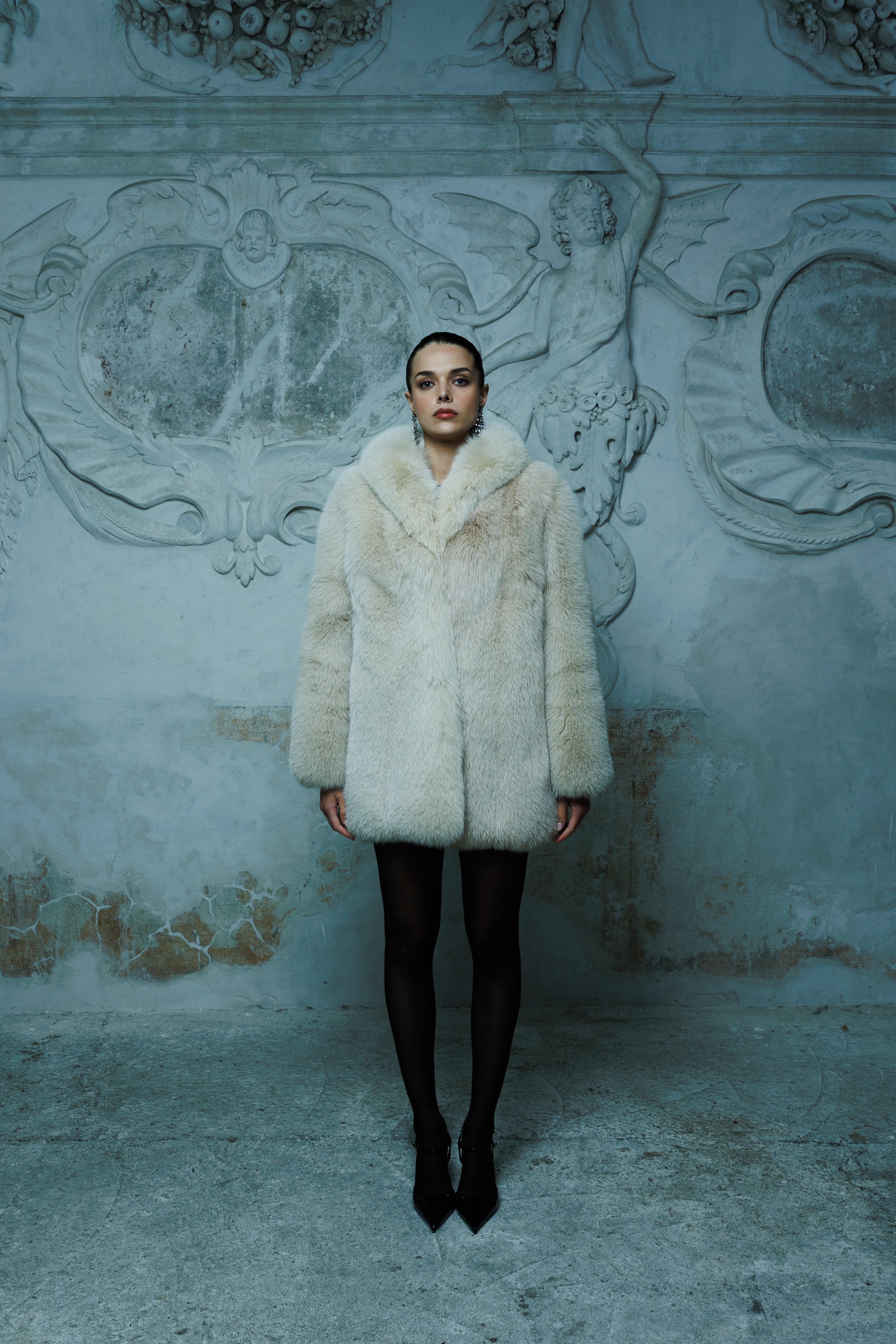Futro z naturalnego Lisa w chłodnym beżowym odcieniu, średniej długości, o gładkiej powierzchni, która nadaje mu czystą i wyważoną formę. Harmonijna linia klasycznego kołnierza sprawia, że całość zyskuje subtelną strukturę, a forma pozostaje elegancka i oszczędna w wyrazie. Zapinanie na metalowe haftki wsuwane w kółeczka pozwala zachować spójność i prostotę konstrukcji, bez dodatkowych elementów zaburzających rytm futra.